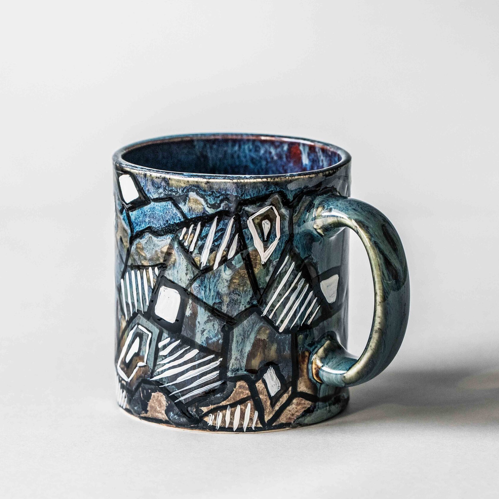 Твоя кружка покрыта авторской глазурью - видишь какие красивые переливы? Узор выполнен вручную и требует бережного обращения: старайся не мыть чашку в посудомойке, просто сполосни под краном. 500 мл. В наличии только один экземпляр!